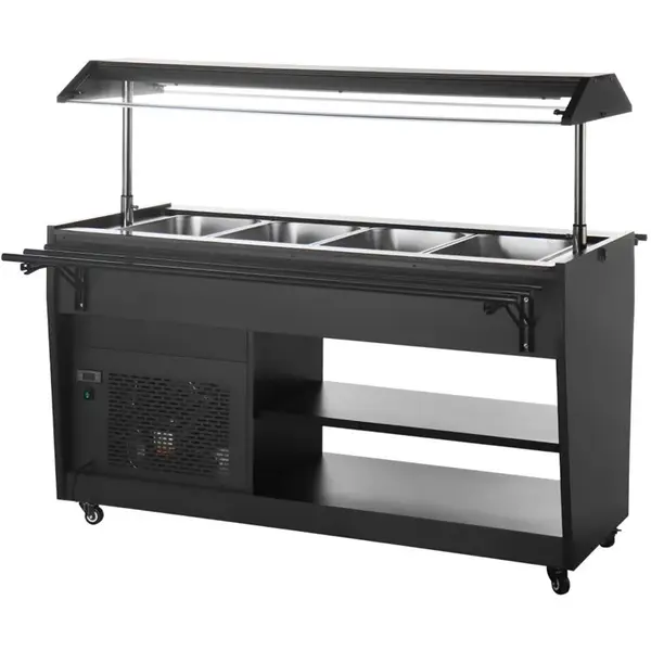 Gekoeld Buffet | G-SERIE | Zwart | 4x 1/1 GN | 0°C/+10°C | Statisch | Liftkap (Verlicht) | Wielen (Geremd) | 1508x740x1356(h)mm