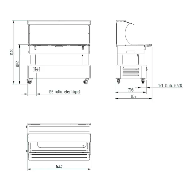 Daanaast heeft het buffet aan de bovenkant een overkapping van RVS met LED-verlichting, voor aantrekkelijke presentatie van de gerechten, en hardglazen bescherming die neerdaling van stof en vuil beperkt. Op die overkapping is bovendien een praktisch en stevig opstelvlak gecreëerd, waar bijvoorbeeld servetten of zout en peper en andere kruiden of sauzen kunnen worden geplaatst.