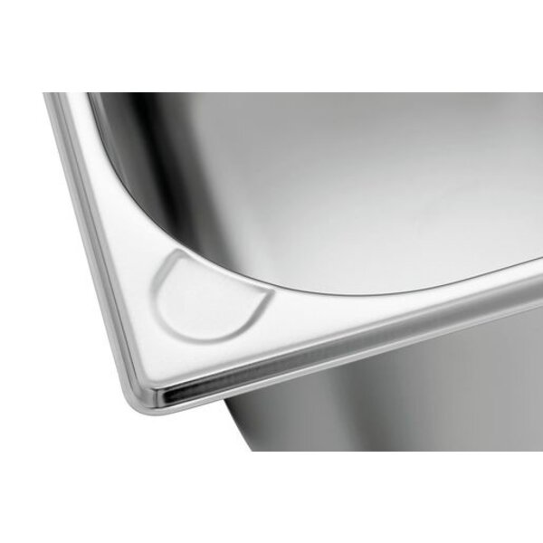 Deze 1/2 GN-bak uit de BASIC LINE-serie van Bartscher is gemaakt van roestvrij CNS (chroom-nikkelstaal) met een zijdeglans mat oppervlak en ontworpen voor intensief gebruik in professionele keukens. Het duurzame materiaal garandeert een lange levensduur, is eenvoudig te reinigen en behoudt zijn glans, zelfs bij frequent gebruik. Ideaal voor het bereiden, bewaren en serveren van uiteenlopende gerechten, en perfect geschikt voor buffetten, catering en iedere keuken waar kwaliteit en uitstraling centraal staan.