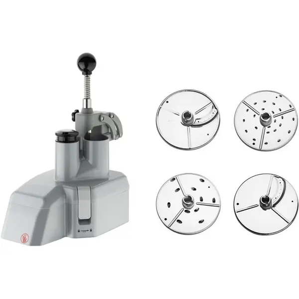 De set wordt geleverd met 4 schijven, bestaande uit 2 raspschijven (3 en 7 mm) en 2 snijschijven (2 en 4 mm), waardoor verschillende sneden eenvoudig mogelijk zijn. Dankzij de grote invoeropeningen en de veerbelaste duwer kunnen ook grotere hoeveelheden efficiënt en veilig worden verwerkt. De duurzame RVS snijmessen zorgen voor langdurige prestaties en eenvoudig onderhoud bij intensief gebruik.