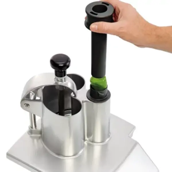 Dit apparaat is ontworpen voor het snel en eenvoudig snijden, raspen en schaven van diverse groenten. Dankzij het krachtige snijmechanisme en de ruime vulopening kun je moeiteloos groenten verwerken. Er zitten 2 cilindrische vulopeningen bij van 39 en 58 mm. Dit maakt de machine geschikt voor verschillende toepassingen, met de plakjesschijven snij je tomaten, ui, champignons etc., en met het raspmes snij je kazen als mozzarella.