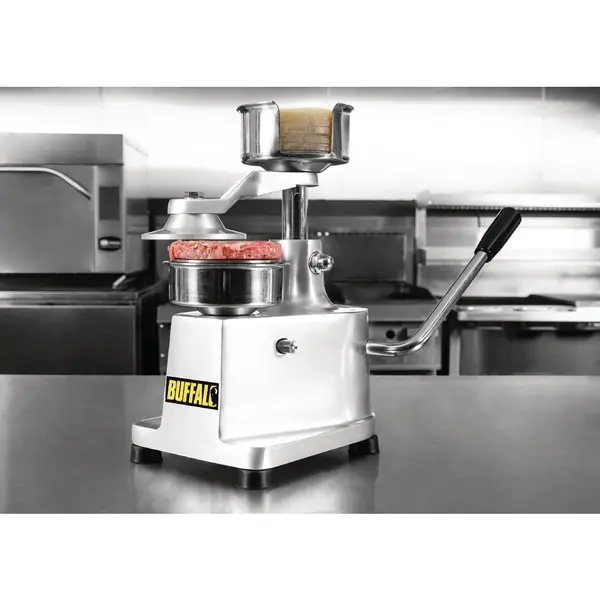 Ontworpen voor betrouwbaarheid en prestaties, is de Buffalo hamburgerpers een uitstekende keuze voor kleinere bedrijven zoals boerderijwinkels, kleine slagers of start-ups.