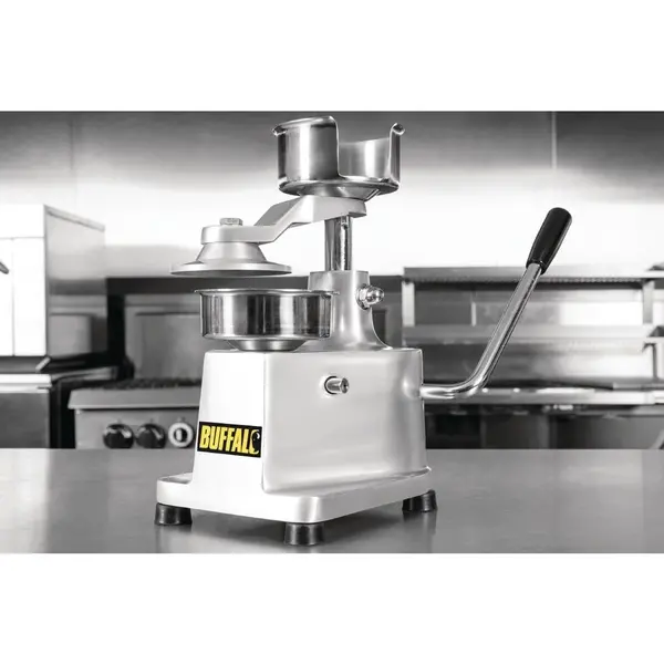 Garandeer consistent gevormde hamburgers elke keer met deze Buffalo handmatige hamburgerpers met hefboommechanisme. Ontworpen met een sterke, hoogwaardige pers, produceert de machine uniforme Ø 100 mm hamburgers consistent, zodat klanten perfect gevormde burgers ontvangen - allemaal zonder de noodzaak van een elektrische stroomvoorziening.