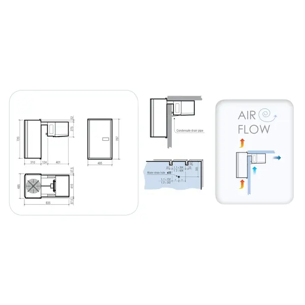 Hang-Wandunit | 11.4-19.3m³ | 0°C/+5°C | 230V (1.16kW) | 485x835x767(h)mm