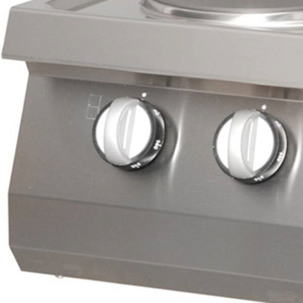 Deze elektrische Heavy Duty kookplaat met twee pitten is speciaal ontwikkeld voor intensief dagelijks gebruik in drukke keukens zoals restaurants, lunchrooms en hotels. De behuizing is gemaakt van dik roestvrij staal, wat zorgt voor een robuuste en duurzame constructie die lang meegaat. De kookplaat is voorzien van grote, praktische draaiknoppen en een ergonomisch ontwerp, waardoor het eenvoudig is om de temperatuur in te stellen tussen de 90 en 450 graden Celsius. De veiligheidsthermostaat met oververhittingsbeveiliging zorgt voor veilig gebruik. Dankzij het glad afgewerkte RVS oppervlak met naadloze lasnaden en afgeronde hoeken is de kookplaat zeer gemakkelijk schoon te maken.