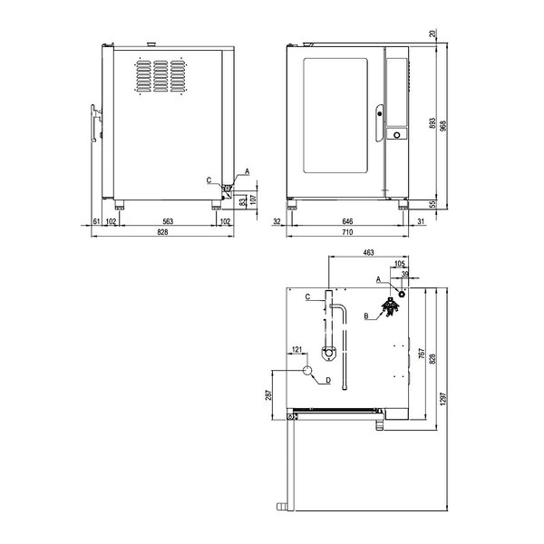 Door de krachtige ventilatoren met draairichtingswisseling en de gepantserde RVS verhittingselementen direct achter de ventilatordeflector is de warmteverdeling in de oven echt gelijkmatig en optimaal. Zo ben je verzekerd van consistente bakresultaten. Er is daarnaast eenvoudig te kiezen tussen hetelucht (20°C/270°C), stoom (20°C/100°C), een combinatie van hetelucht en stoom (20°C/270°C) en ook heeft de oven een handige aparte afkoelstand. De oven is voorzien van stoomdcondensator voor condensafvoer en een afvoer voor stoom- en kookdampen aan de bovenkant.