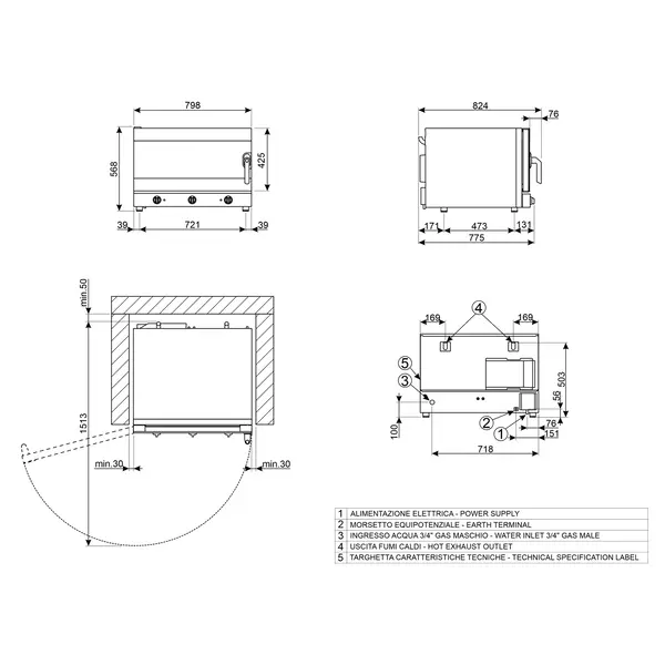 Heteluchtoven | ALFA | 4 Niveaus (EN600x400) | Elektrisch | 50°C/270°C | 6.9kW (400V) | Bevochtiging (Handmatig) | 798x747x563(h)mm