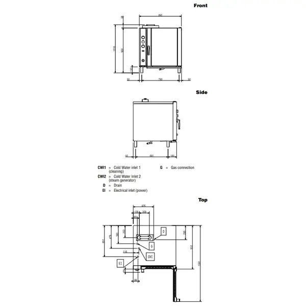 Heteluchtoven | ConvexLine | 10 Niveaus (1/1 GN) | Gas | 30°C/300°C | 18.5kW/0.35kW (230V) | Bevochtiging (Automatisch) | 890x900x970(h)mm