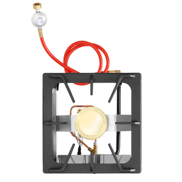 De hokker is voorzien van een brander met enkele ring die voorbereid is op propaangas met thermokoppel en piëzo ontsteking, zodat een elektrische aansluiting niet nodig is om toch op een veilige manier te ontsteken.
