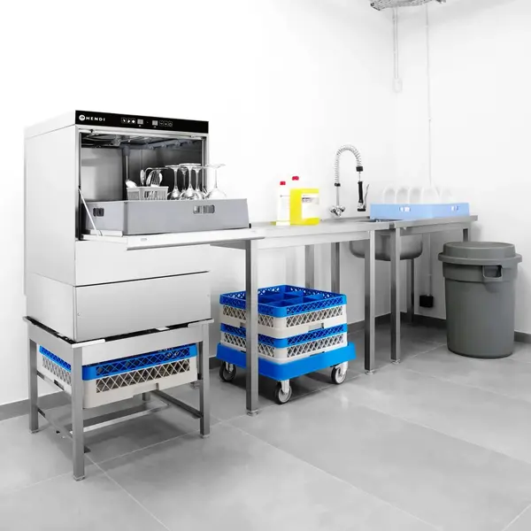 Deze professionele horecavaatwasser van HENDI is uitgevoerd in hoogwaardig RVS met enkelwandige behuizing en stevige dubbelwandige deur.