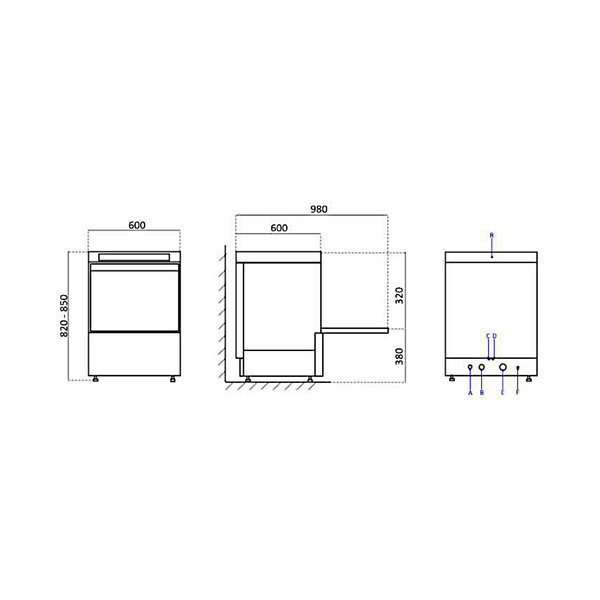 Horeca Vaatwasser | Mand 500x500 | Afvoerpomp | Zeeppomp | Naglanspomp | Ontharder | 400V | 600x600x820(h)mm