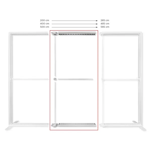 Deze horizontale verlengset is speciaal geschikt voor de standaard Luxus LUMIX™ LED-frames met breedte van 2000 mm, 4000 mm en 5000 mm en maakt het mogelijk om de frames 850 mm extra lengte te geven. Net als de staande frames beschikt het plafondframe over dezelfde frame-opbouw en LED-verlichting, en wordt het geheel geleverd inclusief de benodigde voedingsadapters en een praktische transporttas.
