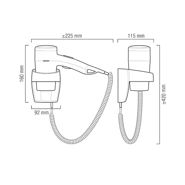 Hotelföhn | EXECUTIVE | Kunststof | 2 Snelheden + 2 Temperaturen | Uittrekbaar Snoer | 1.2kW (230V) | Wandmontage | 160x115x225(h)mm