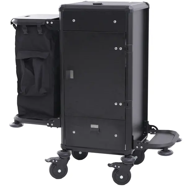 Met deze huishoudwagen vervoer je materialen en linnengoed overzichtelijk binnen professionele omgevingen. De wagen is voorzien van een uittrekbare lade en een polyester waszak (400 x 400 x 850 mm), geschikt voor het verzamelen van linnengoed en wasbaar tot 40 °C.