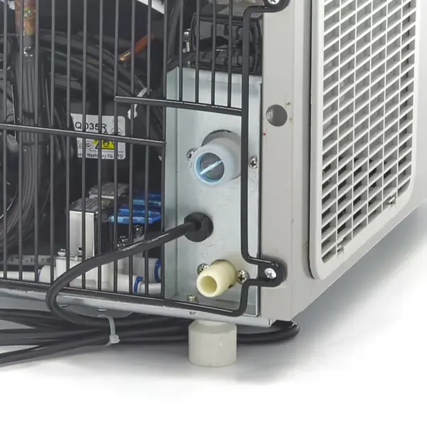 Deze watergekoelde ijsblokjesmachine maakt gebruik van het milieuvriendelijke koelmiddel R290. De machine produceert holle, kogelvormige ijsblokjes in één vast formaat en is voorzien van overbelastingsbeveiliging voor veilig gebruik. De automatische watertoevoer zorgt voor continu bedrijf zonder handmatig bijvullen. De machine is niet uitgerust met een afvoerpomp, waardoor de afvoer lager dan de uitloop aangesloten moet worden.