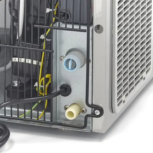 Deze watergekoelde ijsblokjesmachine maakt gebruik van het milieuvriendelijke koelmiddel R290. De machine produceert holle, kogelvormige ijsblokjes in één vast formaat en is voorzien van overbelastingsbeveiliging voor veilig gebruik. De automatische watertoevoer zorgt voor continu bedrijf zonder handmatig bijvullen. De machine is niet uitgerust met een afvoerpomp, waardoor de afvoer lager dan de uitloop aangesloten moet worden.