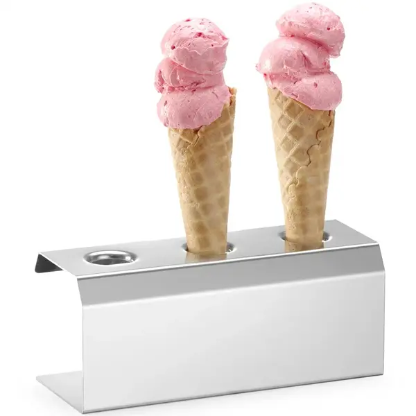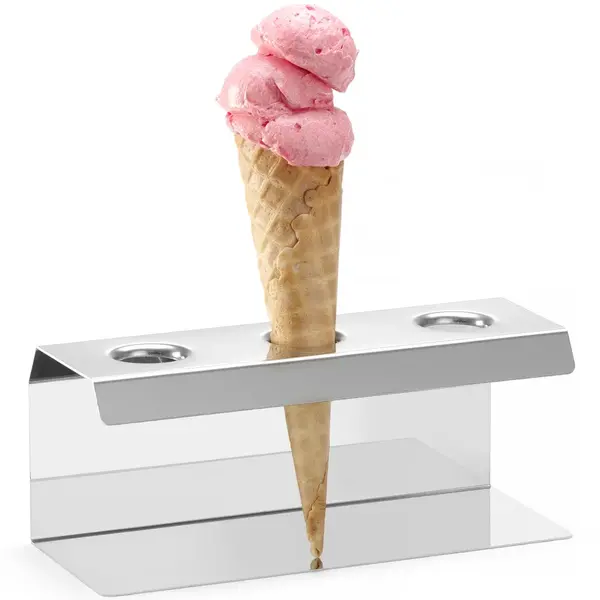 De ijshoornstandaard van HENDI is vervaardigd uit hoogwaardig RVS en geschikt voor het netjes presenteren en bewaren van drie ijshoorntjes tegelijk. Door het stevige ontwerp is deze standaard ideaal voor gebruik in ijssalons, cafés en horecaomgevingen waar hygiëne en stijl belangrijk zijn.