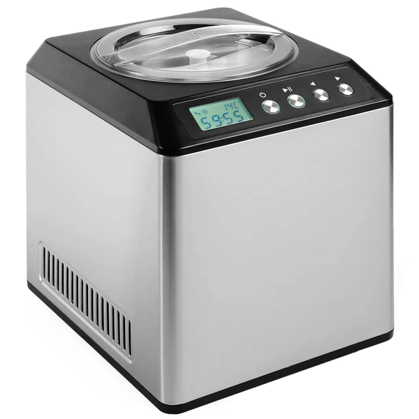 De ijsmachine heeft een ruime inhoud van 2 liter en beschikt over een luchtgekoelde compressor met temperatuurbereik van -10°C/-35°C. Het instellen doe je heel eenvoudig met de robuuste knoppen, met verlichte kleurindicatie rond de knop, en de voortgang, bedrijfstijd en beweging van de mixer wordt duidelijk weergegeven op het verlichte digitale scherm.