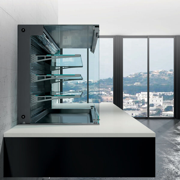 - Vitrine met 3 niveau’s, geopend aan de klantzijde.