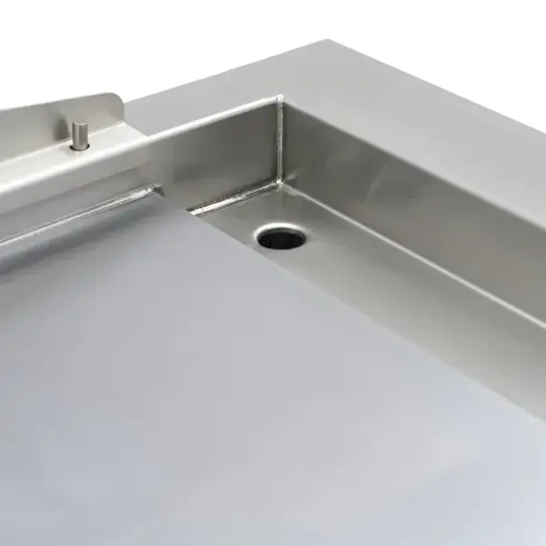 De uitneembare vetopvangbak houdt het werkoppervlak schoon en maakt onderhoud eenvoudig. Dankzij het compacte ontwerp zonder onderstel is deze bak-/grillplaat perfect voor gebruik op werktafels, in kleinere keukens of foodtrucks.
