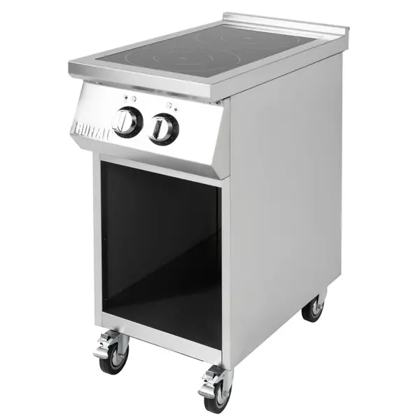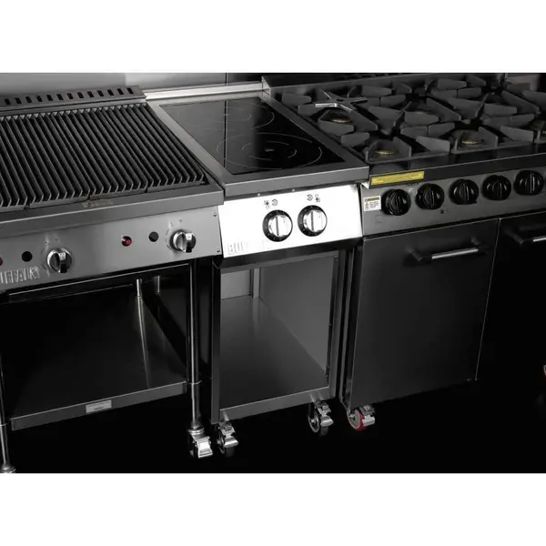 Inductiefornuis | 2 Kookpunten | 7kW (400V) | Open Onderkast | Wielen (Geremd) | 400x750x920(h)mm