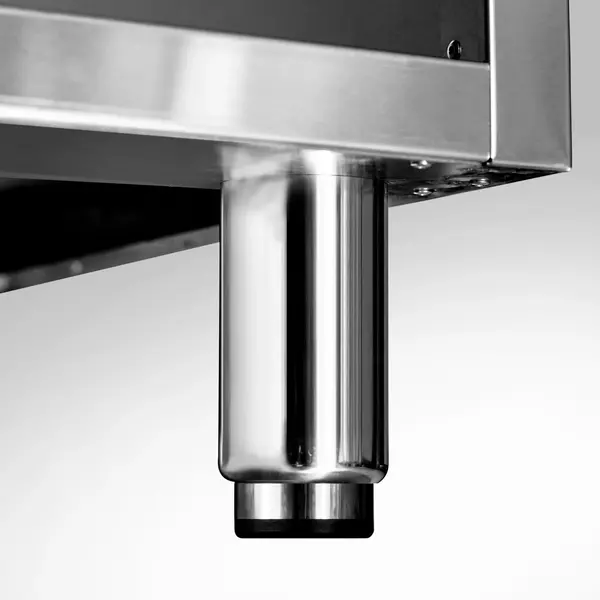 Daarnaast zorgt de achteropstand dat er niet zomaar iets achter het apparaat kan vallen, voor extra hygiëne, is het apparaat ook op iets ongelijke ondergrond stabieler te plaatsen door de stevige RVS stelpoten en zijn losse deuren beschikbaar om de onderkast mee te kunnen afsluiten!