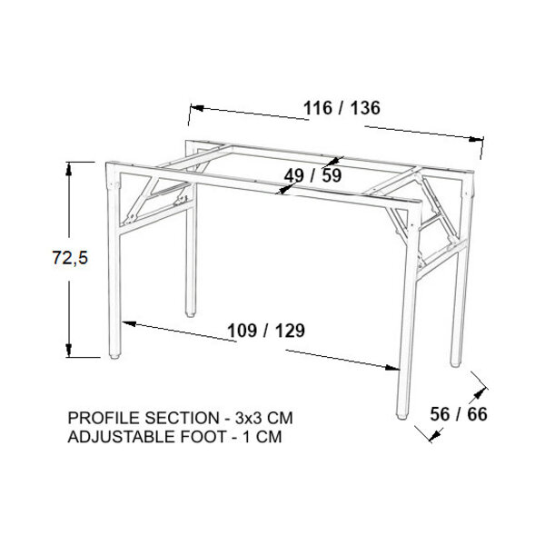 Inklapbaar Tafelonderstel | ORIGAMI | Staal | Zwart | 1160x560x725(h)mm