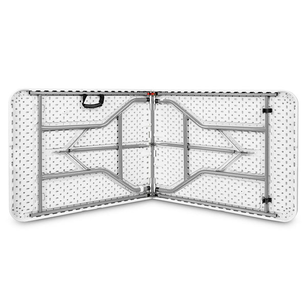 Daarnaast heeft de tafel een draagkracht van maximaal 100 kg en is het opvouwsysteem voorzien van automatische blokkering om per ongeluk inklappen te voorkomen. Bovendien hebben de poten van het stevige metalen frame rubberen voetjes tegen krassen of glijden op de vloer!