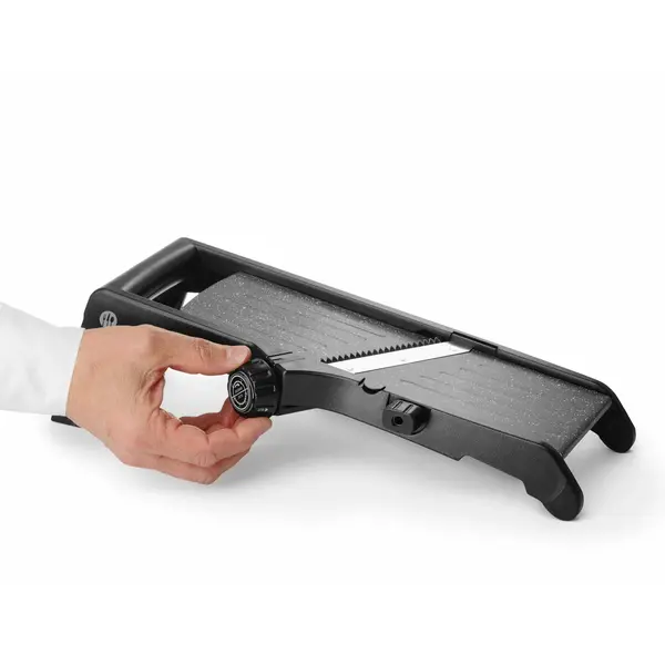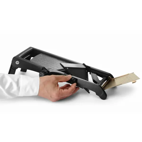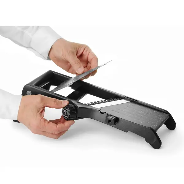 Deze HENDI Japanse mandoline is een hoogwaardig hulpmiddel voor het snijden van groenten en fruit met de hoogste precisie die professionals van wereldklasse mogen verwachten. De groentsnijder heeft verschillende ultrascherpe dunne mesjes voor nauwkeurig, uniform en snel snijden, voor het gevoel van een echt samoerai zwaard.