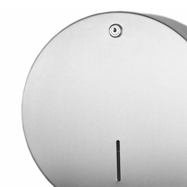 De dispenser wordt aan de wand gemonteerd en heeft capaciteit voor jumborollen tot max. Ø 270 mm. Deze kunnen eenvoudig worden bijgevuld door de naar beneden openende voorkant, welke met een sleutel wordt afgesloten.