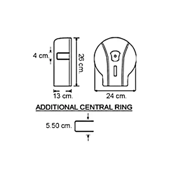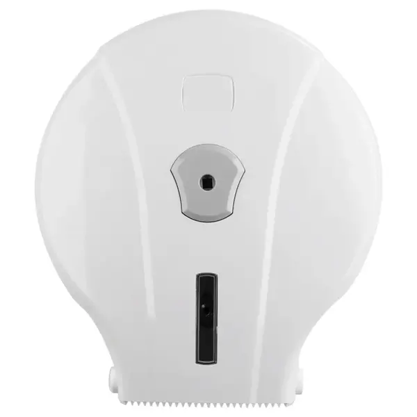 Deze compacte FLIPPER jumboroldispenser van Luxus heeft een moderne afgeronde behuizing in stevig wit met grijs kunststof en is geschikt voor jumborollen met diameter van 180 - 230 mm met rolhouder van Ø 45/55 mm.