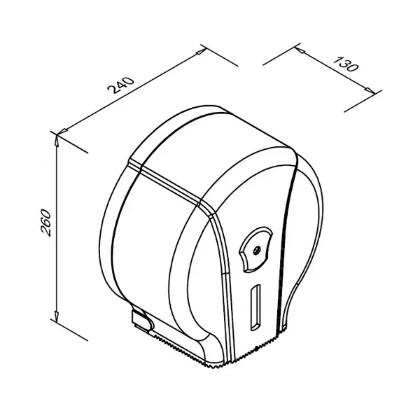 Het papierniveau kan eenvoudig in de gaten worden gehouden via het kijkvenster en de rollen kunnen probleemloos worden verwisseld met de vergrendelde opening, waarvoor een speciale sleutel is bijgesloten. De opening voor het papier zit netjes uit het zicht aan de onderkant met scheurranden aan 3 kanten, voor eenvoudige bereikbaarheid en extra makkelijk afscheuren.