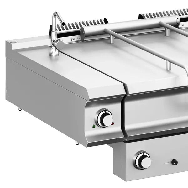 Door het soepele zwenkmechanisme met ergonomische hendel aan de voorkant is de braadpan makkelijk te kantelen en de braadpan heeft een praktische watervulkraan bovenop.
