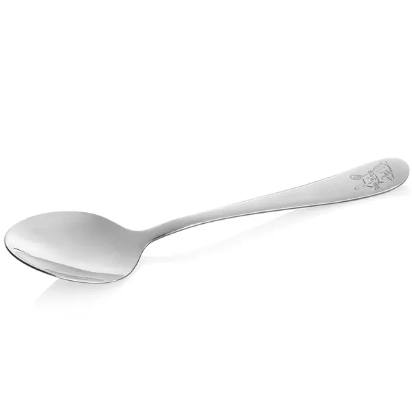 Met dit kinderbestek uit de SOFIA-serie maak je eten en drinken voor kinderen eenvoudig en comfortabel. De lepel heeft een compact formaat en een afgeronde vorm, zodat je kind veilig kan eten. Geschikt voor desserts, yoghurt en warme dranken. Het speelse konijnenmotief op het handvat zorgt voor een vriendelijke uitstraling aan tafel.