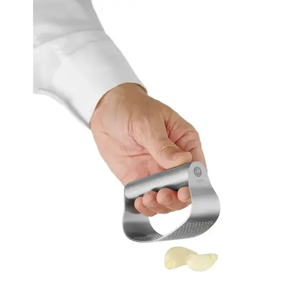 De HENDI knoflookpers is vervaardigd uit hoogwaardig roestvrij staal en ontworpen voor krachtig en efficiënt gebruik. Dankzij de gebogen vorm plet je met minimale inspanning meerdere teentjes knoflook tegelijk, zelfs met één hand. De open constructie zorgt ervoor dat de pers eenvoudig te reinigen is na gebruik. Met een gatdiameter van Ø 3 mm is deze pers ook geschikt voor andere ingrediënten zoals gember, waardoor het een veelzijdige aanvulling is op iedere professionele of thuiskok zijn keukengerei.