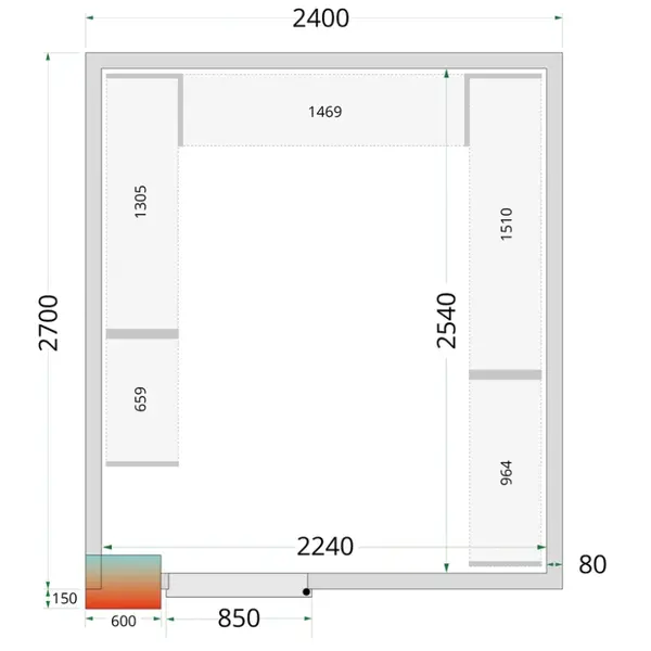 Koel-/Vriescel | CR-SERIE | 11.6m³ | Isolatie 80mm | 2400x2700x2200(h)mm