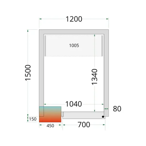 Koel-/Vriescel | CR-SERIE | 2.84m³ | Isolatie 80mm | 1200x1500x2200(h)mm
