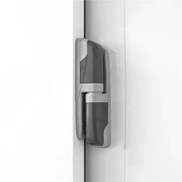 De vloer is uitgevoerd in verstevigd RVS - met reliëf-afwerking voor extra stroefheid - en de stalen wanden zijn voorzien van hoogwaardige witte coating. De afsluitbare deur heeft een veiligheidsopening aan de binnenkant en de scharnierkant is eenvoudig naar wens om te keren, voor optimaal gebruiksgemak.