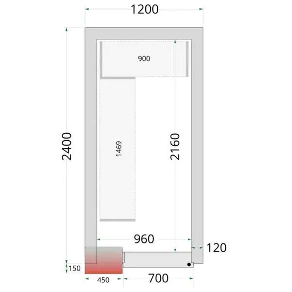 Koel-/Vriescel | CR-SERIE | 4.06m³ | Isolatie 120mm | 1200x2400x2200(h)mm