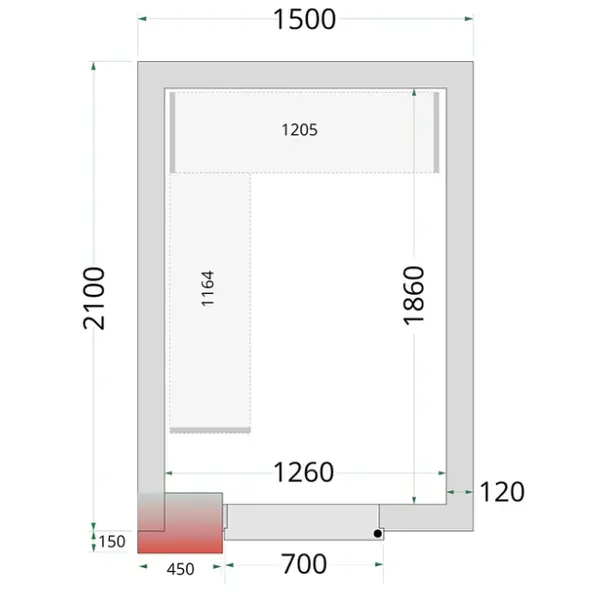 Koel-/Vriescel | CR-SERIE | 4.59m³ | Isolatie 120mm | 1500x2100x2200(h)mm