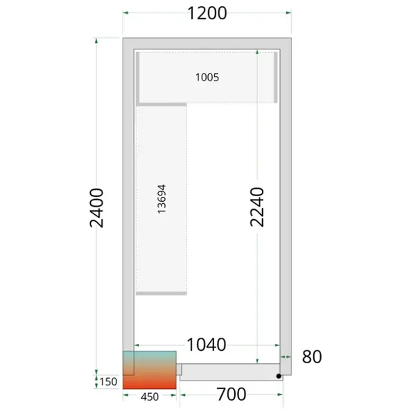 Koel-/Vriescel | CR-SERIE | 4.75m³ | Isolatie 80mm | 1200x2400x2200(h)mm