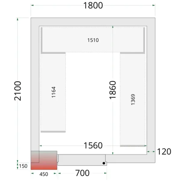 Koel-/Vriescel | CR-SERIE | 5.69m³ | Isolatie 120mm | 1800x2100x2200(h)mm