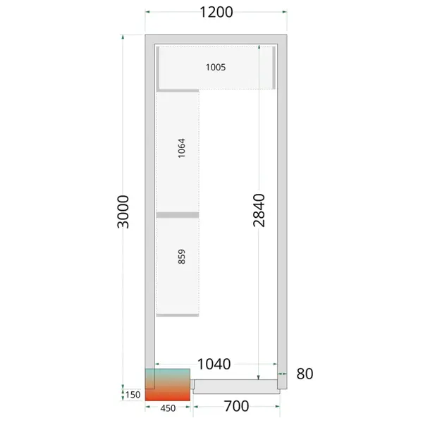 Koel-/Vriescel | CR-SERIE | 6.03m³ | Zonder Vloer | Isolatie 80mm | 1200x3000x2120(h)mm