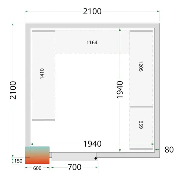 Koel-/Vriescel | CR-SERIE | 7.68m³ | Zonder Vloer | Isolatie 80mm | 2100x2100x2120(h)mm