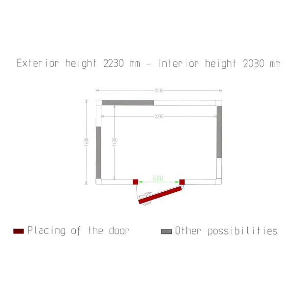 Binnenafmetingen: B 2230 x D 1430 x H 2030 mm