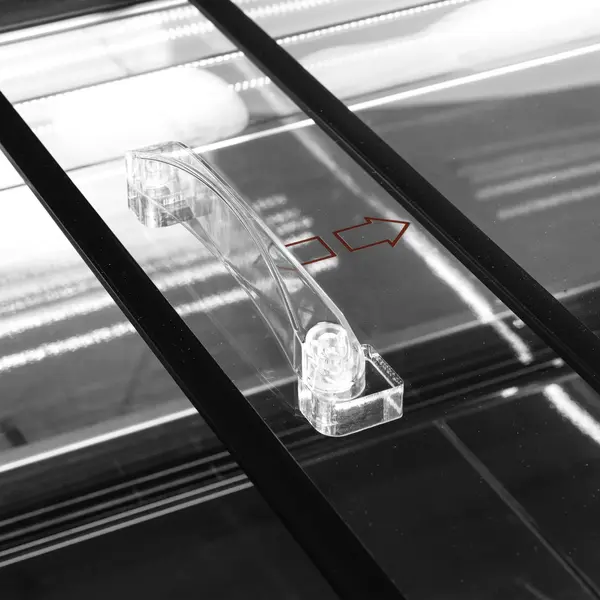 De glazen zijkanten en glazen schuifdeksels garanderen optimale productzichtbaarheid vanuit meerdere hoeken. De horizontale LED-binnenverlichting verlicht de inhoud helder en gelijkmatig, waardoor producten extra worden geaccentueerd. En de geïntegreerde etiket- en prijsstrippen ondersteunen een overzichtelijke en commerciële presentatie, ideaal voor impulsaankopen.