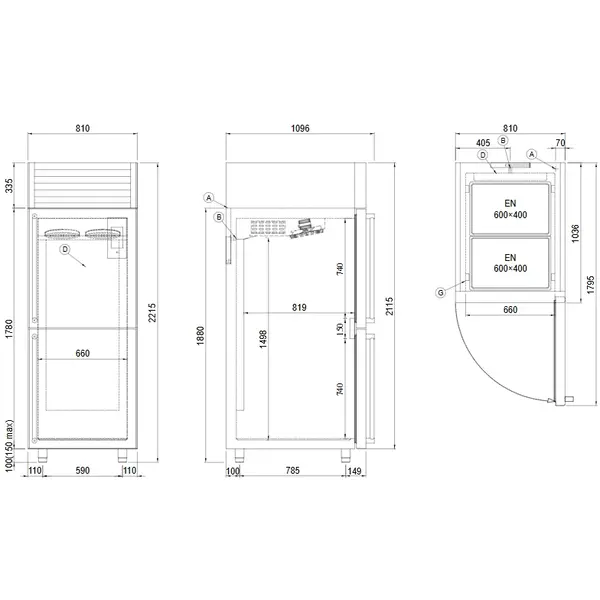 Binnenafmetingen: B 660 x D 819 x H 1498 mm