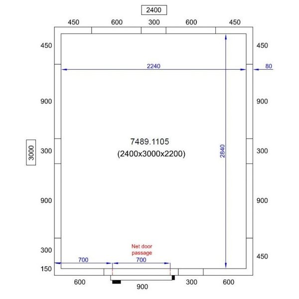 Binnenafmetingen: B 2240 x D 2840 x H 2040 mm