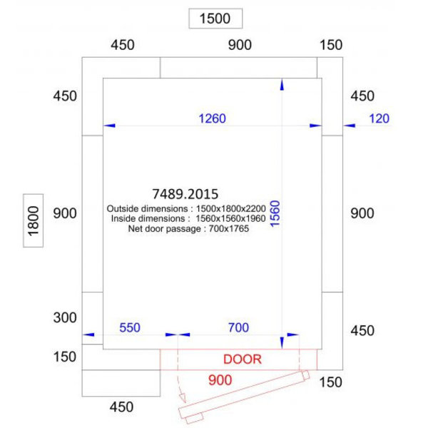 Koelcel | PRO LINE | Incl. Motor | 3.9m³ | +2°C/+8°C | Isolatie 120mm | 230V | 1500x1800x2200(h)mm