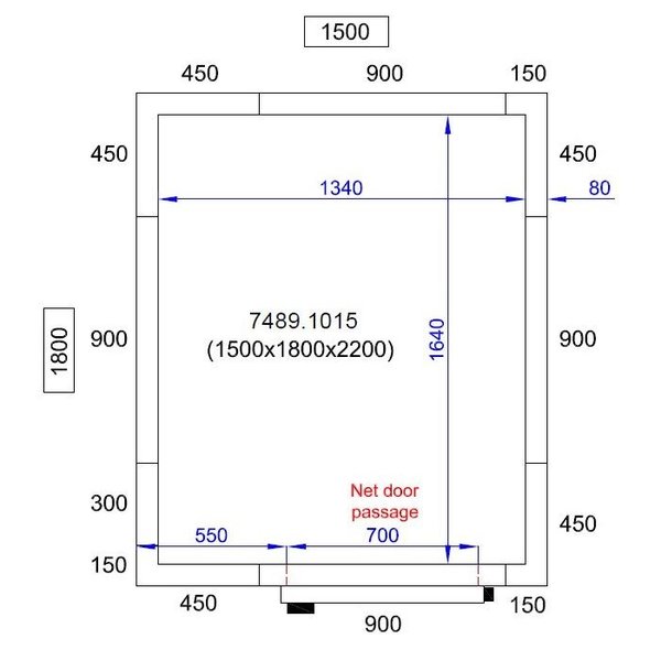 Koelcel | PRO LINE | Incl. Motor | 4.5m³ | +2°C/+8°C | Isolatie 80mm | 230V | 1500x1800x2200(h)mm